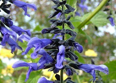 The genus Salvia is wide spread both geographically and in appearance. The plants range from small compact annuals to large sprawling shrubs. The colours vary from pure white to near black. Unlike many other genera blue flowers are quite common and come in a variety of shades.